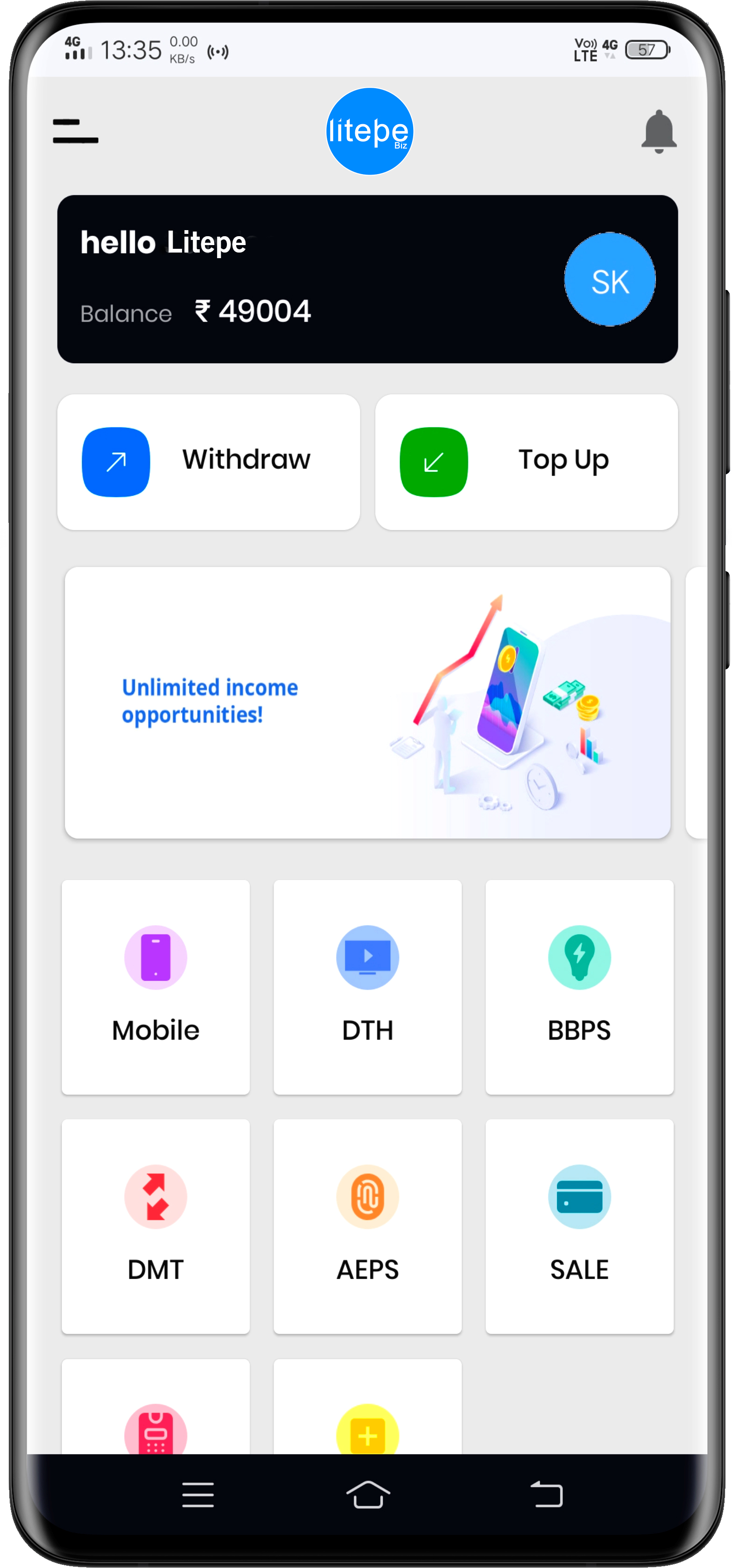 Litepe Business solutions offers numerous utility services. Using our portal, you can pay bills of electricity, phone, gas, water, internet and a lot more. Instant recharge any mobile or DTH. Apart from this you also get the most unique earning opportunity. Now you can sell any DTH connection from your existing shop without keeping any stock of the same..